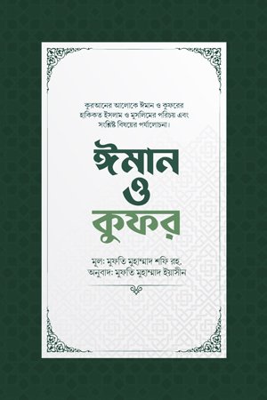 “মুফতি মুহাম্মাদ শফি রহ.–এর “ঈমান ও কুফর” এক অনবদ্য সৃষ্টি, যেখানে বিশ্বাসের আলো আর অস্বীকারের অন্ধকার স্পষ্ট দুই দিগন্তের মতো ভেসে ওঠেছে। ঈমানের স্বচ্ছ ঝরনা আর কুফরের কালো ছায়াকে তিনি এমনভাবে তুলে ধরেছেন, যা পাঠকের চিন্তা জগৎকে পরিশুদ্ধ করে, আত্মাকে জাগিয়ে তোলে। ঈমানের কোমল আলো ও কুফরের অন্ধকারের মাঝখানে মানুষের হৃদয় কোন পথে চলবে—তা সূক্ষ্ম বিশ্লেষণ, দলীল ও প্রজ্ঞাময় উপস্থাপনায় এ বইয়ে ফুটে উঠেছে লেখকের হৃদয়ছোঁয়া সরল বয়ানে।